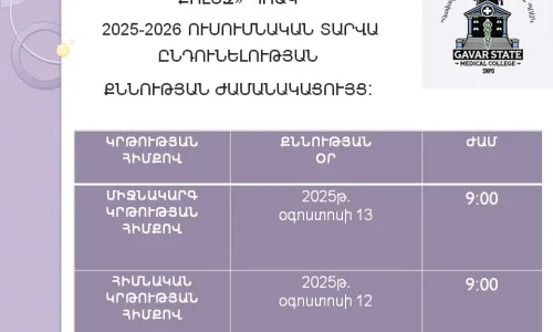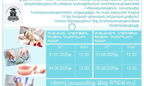 ‼️ՀԱՅՏԱՐԱՐՈՒԹՅՈՒՆ‼️Հարգելի՛ դիմորդներ, Ձեզ ենք ներկայացնում Գավառի պետական բժշկական քոլեջի 2025-2026 ուսումնական տարվա «Կենասաբանություն» առարկայի ընդունելության քննության ժամանակացույցը ։