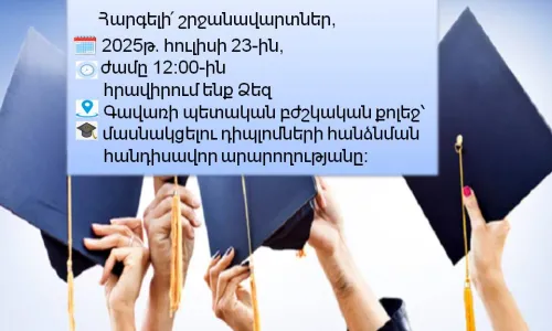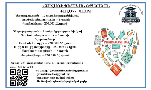 📢Սույն թվական մայիսի 19-ին Գավառի պետական բժշկական քոլեջը հայտարարում է ԲԱՑ ԴՌՆԵՐԻ ՕՐ։👥Հանդիպման ընթացքում նախատեսվում է շրջայց քոլեջում, որի ընթացքում այցելուները կծանոթանան քոլեջի մասնագիտություններին, ուսանողական առօրյային, ընդունելության կարգին և կստանան իրենց հետաքրքրող բոլոր հարցերի պատասխանները։