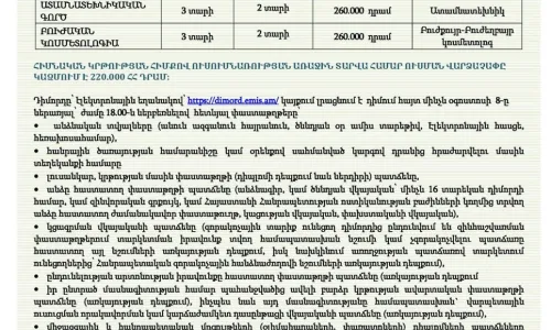 Լրացուցիչ ընդունելություն թափուր տեղերում.