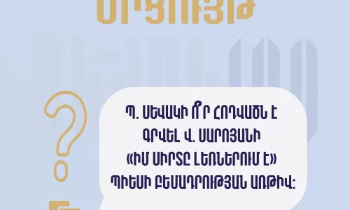 ՀԱՐԳԵԼԻ՛ ՈՒՍԱՆՈՂՆԵՐՊարույր Սևակի 100-ամյակի կապակցությամբ ՀՀ կրթության, գիտության, մշակույթի և սպորտի նախարարությունը և Պարույր Սևակի տուն-թանգարանը համատեղ հայտարարել են «Եղիցի լույս. Սևակ-100» խորագիրը կրող մրցույթ՝ դպրոցների 8-12-րդ դասարանների աշակերտների և նախնական (արհեստագործական) և միջին մասնագիտական ուսումնական հաստատությունների ուսանողների համար: Մրցույթի նպատակն է հայ…