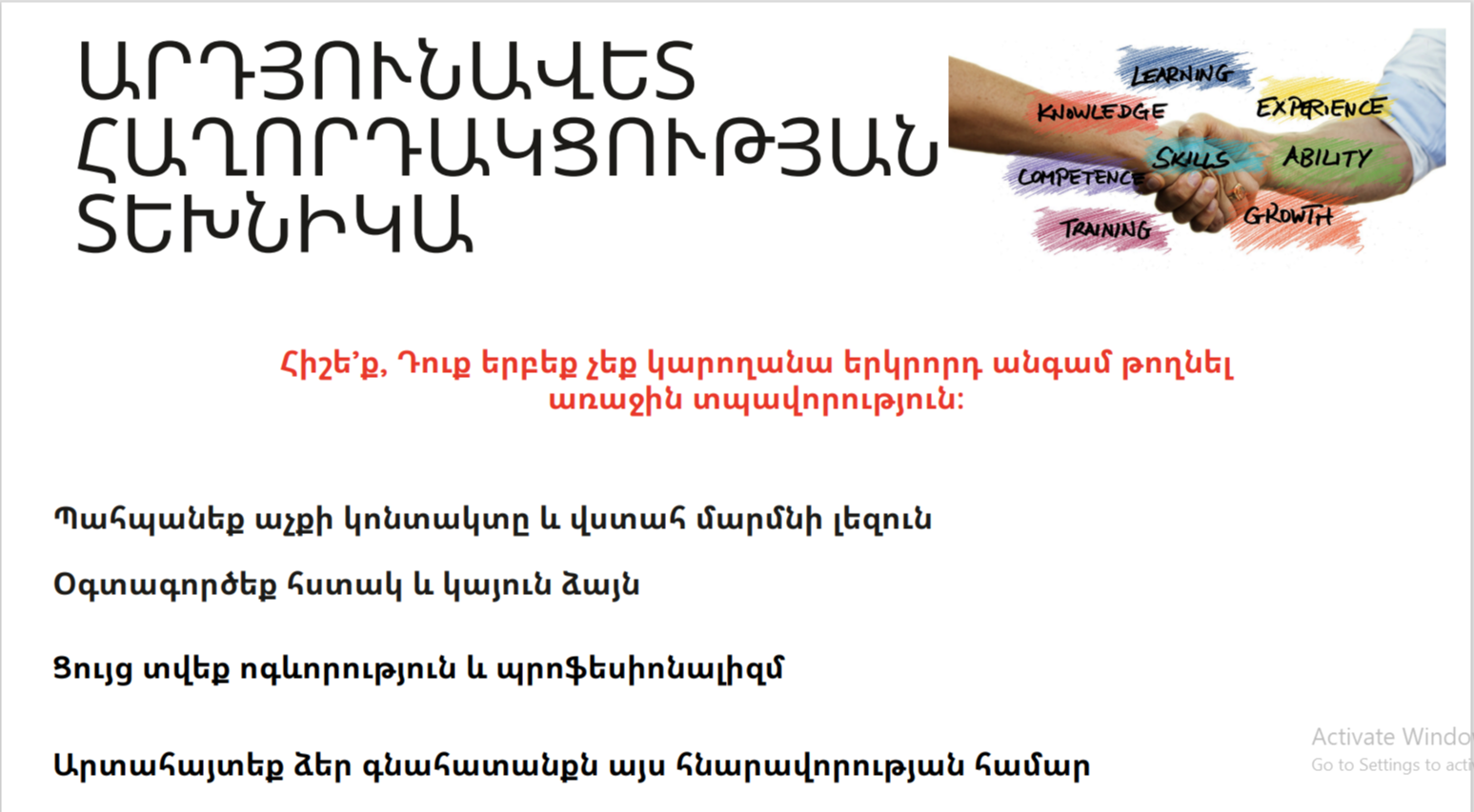 ‼️« Ա․Դ․ Սախարովի անվան մարդու իրավունքների պաշտպանության հայկական կենտրոն» ՀԿ-ի Գեղարքունիքի մասնաճյուղը 🗣«Գործատուներին ներկայանալու հմտությունները» թեմայով հերթական դասընթացն անցկացրեց « Գավառի պետական բժշկական քոլեջ»-ում։ Նախաձեռնության հեղինակը ԳՊԲՔ-ի կարիերայի կենտրոնն էր։