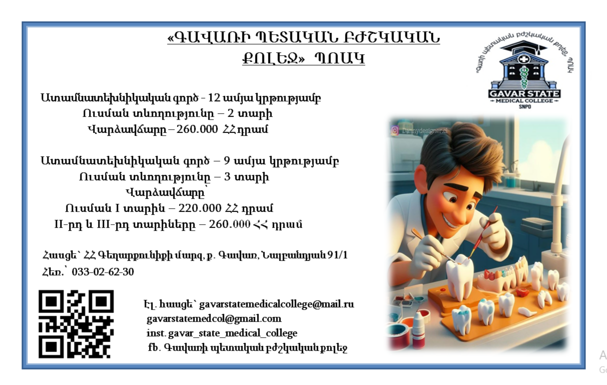 Տեղեկատվություն «Ատամնատեխնիկական գործ» մասնագիտությամբ հետաքրքրվող դիմորդների համար։