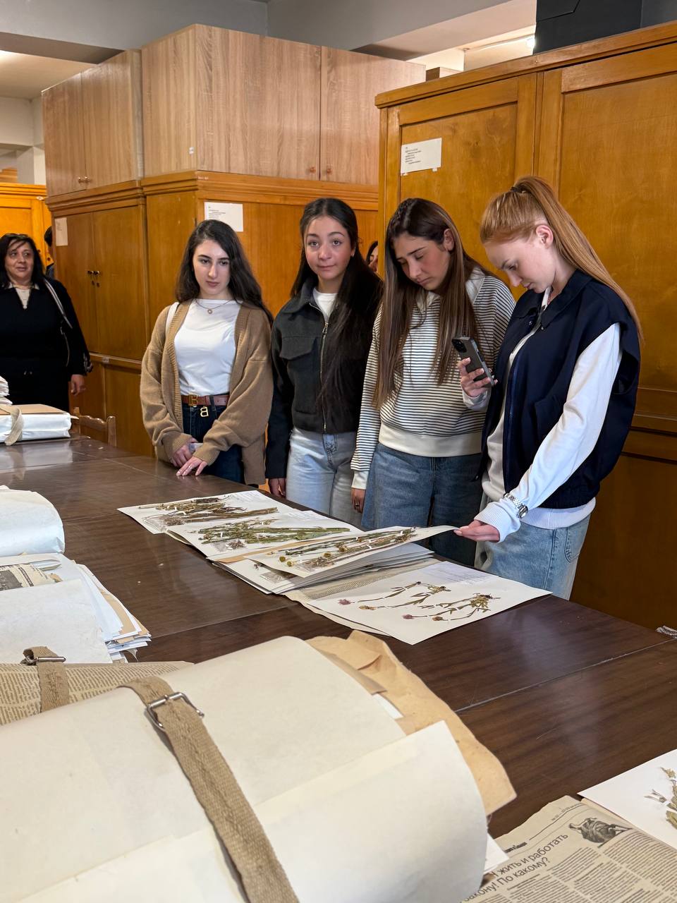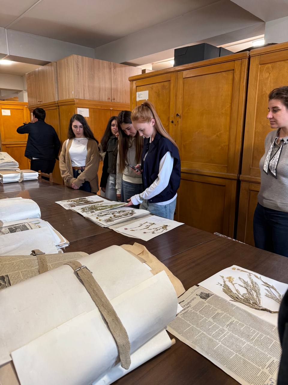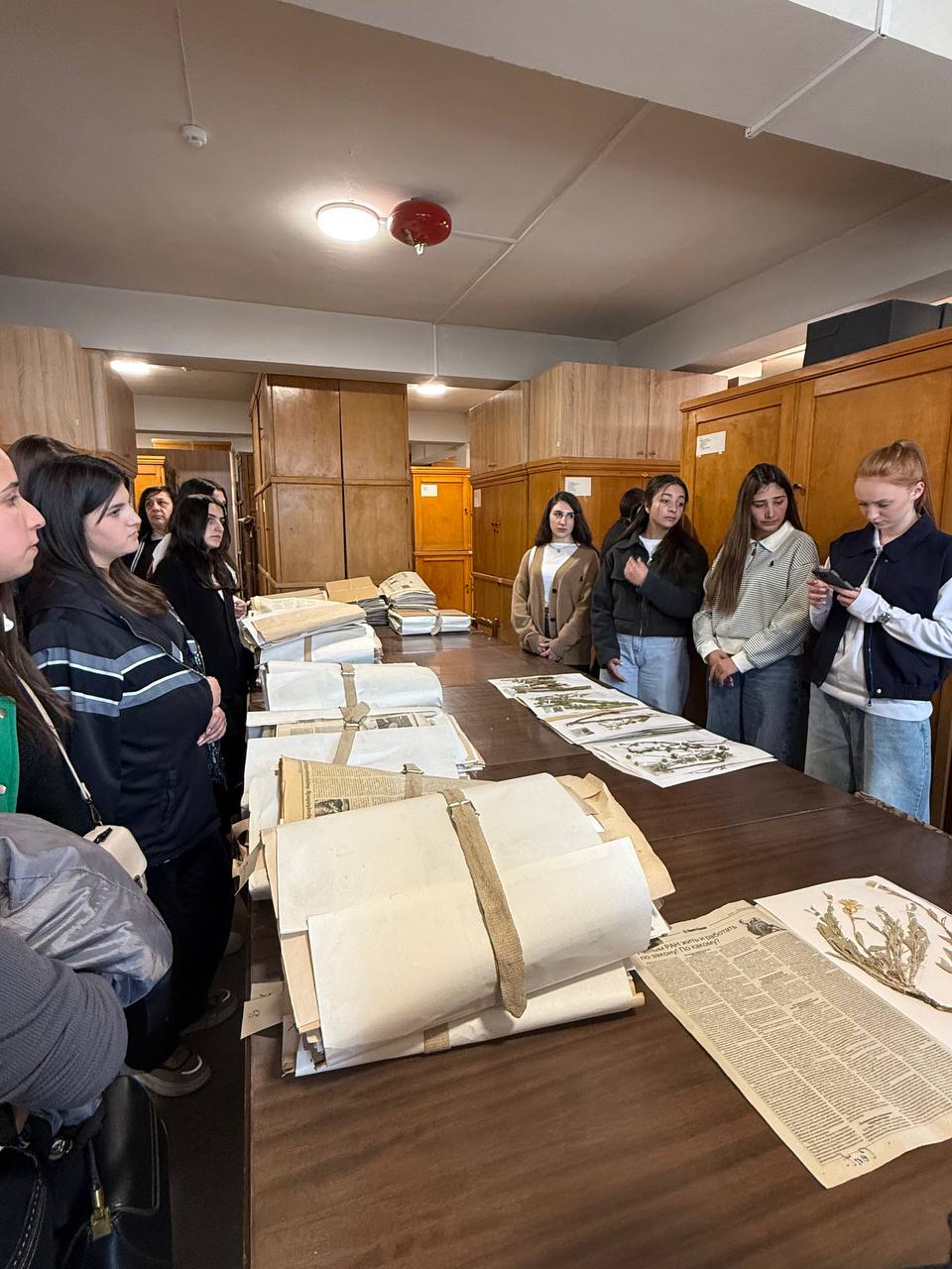 Ուսանողներն այցելեցին նաև «Բույսերի կարգաբանության և աշխարհագրության» բաժին, որտեղ ուսումնասիրեցին հերբարիումները և ծանոթացան դրանց պատրաստման տեխնիկային։