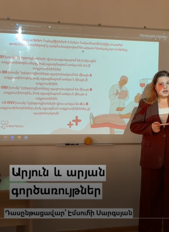 Հանդիպման ընթացքում ներկայացվեց արյան խմբերը, ինչպես նաև գործնականում ցուցադրվեց արյան խմբի որոշման ընթացքը, պլազմայի կիրառության առանձնահատկությունները, դոնորության կարևորությունը՝ ընդգծելով, որ արյան դոնորությունը պատասխանատու քայլ է, որն իրականում կարող է կյանքեր փրկել։
