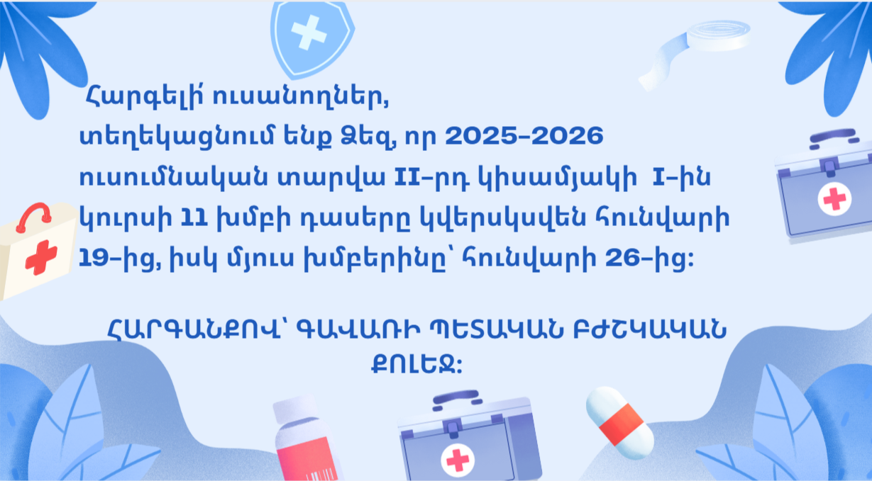 II-րդ կիսամյակի դասերը վերսկսվում են։